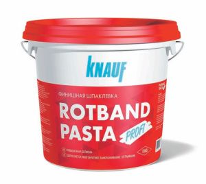Knauf Ротбанд Паста Профи — пастообразный материал на виниловой основе. Благодаря своему составу этот материал характеризуется идеально белым оттенком, повышенной трещиностойкостью и адгезией. Высокая пластичность состава делает его идеальным решением для тонкослойного шпатлевания. Он хорошо заполняет все, даже самые небольшие, трещины и легко разравнивается. После высыхания образует гладкий и ровный слой, на который уже можно наносить краску или клеить обои.
